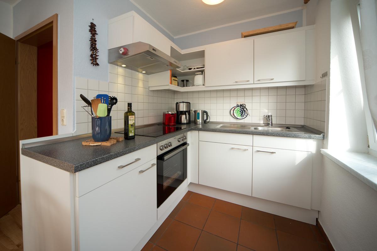 - gut ausgestattete Küche, Herd mit Backofen